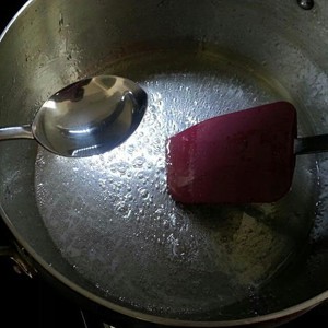 现在再来上传几张熬糖的步骤供大家参考。此图为糖完全化开。千万记得边熬边搅动。