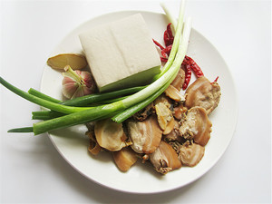 准备好豆腐、葱、红干椒等食材
