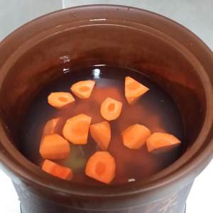 蜜枣丢核连同生姜片一同入煲汤煲。