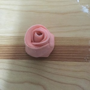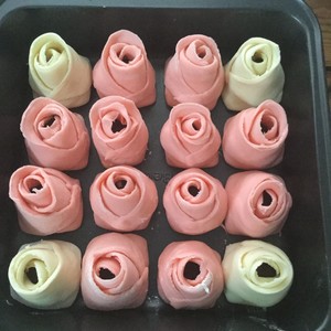 最后一片包住,整理成玫瑰花形,放入烤盘中