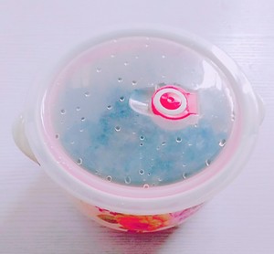 加入白糖后盖上保鲜盒的盖子,如上图。