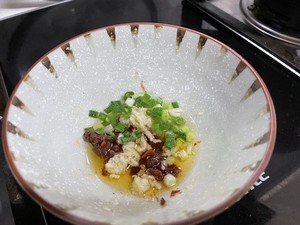 调料:今天做一个很香的调料,用来蘸排骨和莲藕。碗里放豆瓣酱,葱花,蒜末,浇热油烫熟。