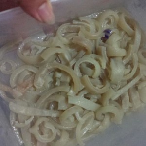 肥油脂清理完成 猪皮切条 入锅再煮两分钟 捞出晾凉