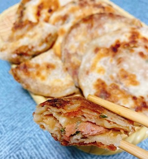 翻面后转小火盖上盖子烙,这样饼比较容易熟而且宣软口感好