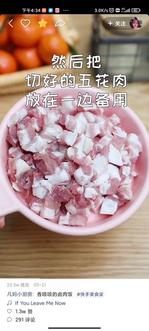 放入五花肉丁 炒出油脂 把多余的油倒出来