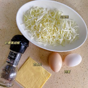 锅喷少许油,下包菜丝炒香,撒上黑胡椒调味!