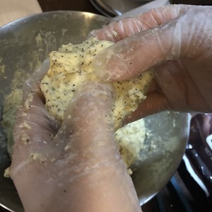 (这个过程比较需要耐心,但也是成就司康独特口感的关键,用指腹是因为指腹的温度相对手掌来说较低,可以尽量减少黄油的融化)