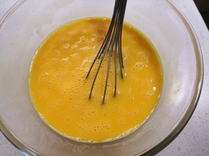 锅里放油烧热,倒入蛋液后用筷子快速不停划动,这样炒出来的鸡蛋比较细碎,不用切。