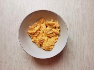 鸡蛋打散,下油锅,鸡蛋炒熟