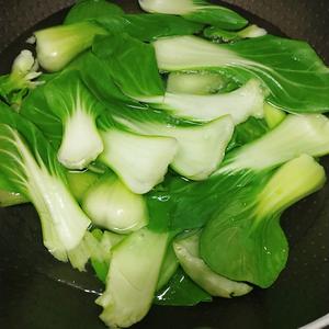 油菜下锅焯水,水里放一小勺盐加几滴油
