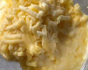 紫薯泥均分为35g左右一个,搓圆后用紫薯泥将马苏里拉芝士全部裹住,然后搓圆,盖保鲜膜冷却备用。