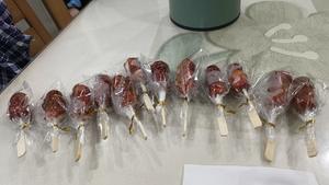 山楂洗干净,用纸吸干水分,用竹签穿上糖葫芦,我一个上面串了三个,这个小山楂白砂糖和清水倒入锅中,搅拌均匀,大火烧滚后就不要搅拌转中小火,熬制淡黄色,不要搅拌,怕糊锅可以不停晃动锅就可以,准备一碗冷水一根筷子,筷子倒入锅中再放入冷水中,如果筷子上的糖嘎嘣脆,糖就熬好了,不要关火,开小火,把串好的山楂在糖水表层的泡泡上滚一圈就放到糯米纸上,或者放在抹油的粘板上,继续下一个,这个裹糖的步骤速度一定要快,不然到最后会糊锅,糖会苦的。最后一定要进冰箱保鲜,吃的时候拿出来就好了。