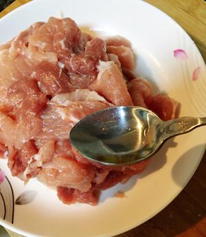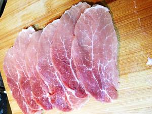 肉切薄大片,别切太厚,薄薄的就行,稍拍松一下。