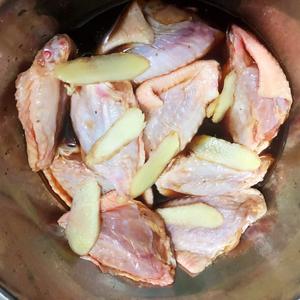 鸡翅洗干净,最好拿凉水提前泡出血水,然后用刀拉几道,加料酒,生抽,姜片提前腌制至少半个小时,可以拿保鲜膜裹好放在冰箱里。