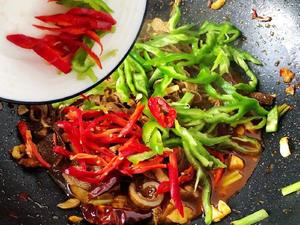 5.放入牛百叶炒匀,加一勺料酒去腥增味