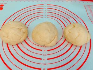 取出醒发好的面团,分割成3等份。揉成圆团继续松弛10分钟