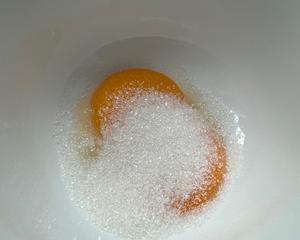 两颗蛋黄打入碗中,倒入白糖,我用的无菌蛋,普通鸡蛋也是可以的