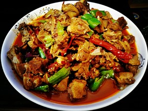 出锅装盘非常好吃?你想吃皮带面也行,吃米饭也行。
