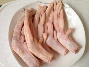 将鸭掌放进电饭煲里煮开,然后取出,把水倒掉。